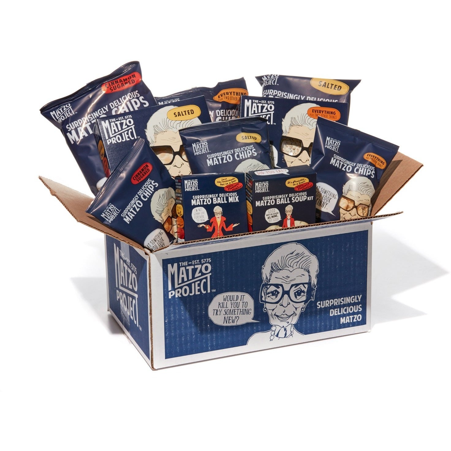 In our ‘Whole Megillah’ you’ll get: One box of Salted Matzo, One box of Everything Matzo, Three 6 oz bags of Matzo Chips, Three 1 oz bags of Matzo Chips, One Matzo Ball Soup Kit, One box of Matzo Crumbs. (Maybe send one to Cousin Bernice?)